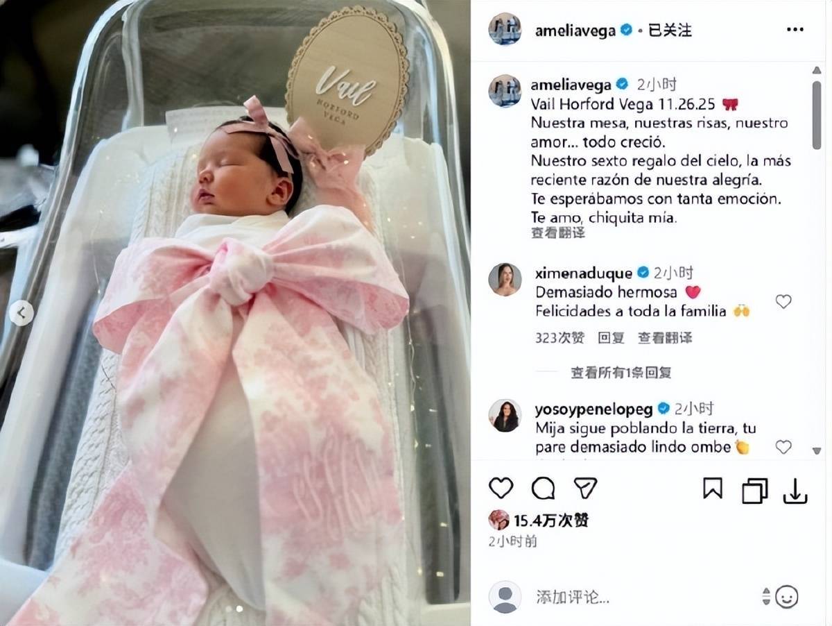 妻子阿米莉亚深情写道:“我们来自天堂的第六份礼物,我们最新快乐的理由。”字里行间,满是温柔与期待,勾勒出一个持续扩张、却始终紧密相依的家的轮廓。